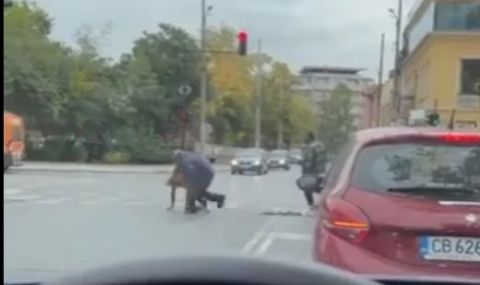 Жесток бой на кръстовище в София се е разиграл пред погледа на смаяни пешеходци и шофьори. Това става ясно от видео, публикувано в социалните мрежи. На кадрите се вижда как група мъже преследват и започват да налагат друг мъж. Мелето се премества и на пътното платно.
