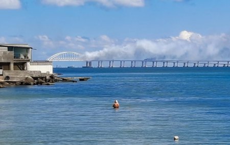 В своя публикация в „Телеграм“ съветник на Аксьонов каза, че около моста е била поставена димна завеса и движението на автомобилите ще бъде възстановено в близко бъдеще, съобщи ТАСС.