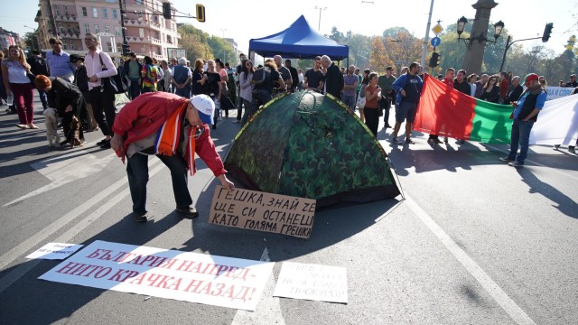 Протестът в София продължава.