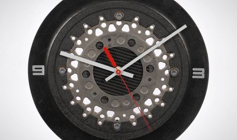 Часовникът е направен от използван спирачен диск от болид на Formula 1, а според допълнителната информация е взет от състезателна кола на Renault. След неговото „пенсиониране“ и поставянето на механизъм и стрелки, то спирачният диск официално може да се нарече часовник, който би подхождал идеално на стената в гаража или офиса.